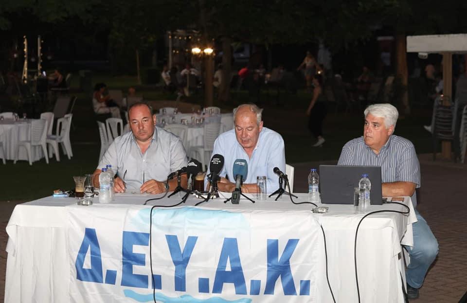 Για κάθε έργο που πρόκειται να γίνει δηλαδή θα το γιορτάζουμε…. Δόθηκε αυτή η συνέντευξη με τα κανάλια να την προβάλλουν με κάθε επισημότητα, και να τοποθετείται μπροστά απο το τραπέζι της συνέντευξης ένα μεγάλο πανό που γράφει με μεγάλα γράμματα ΔΕΥΑΚ (αλήθεια, ποιός το σκέφτηκε αυτό;).