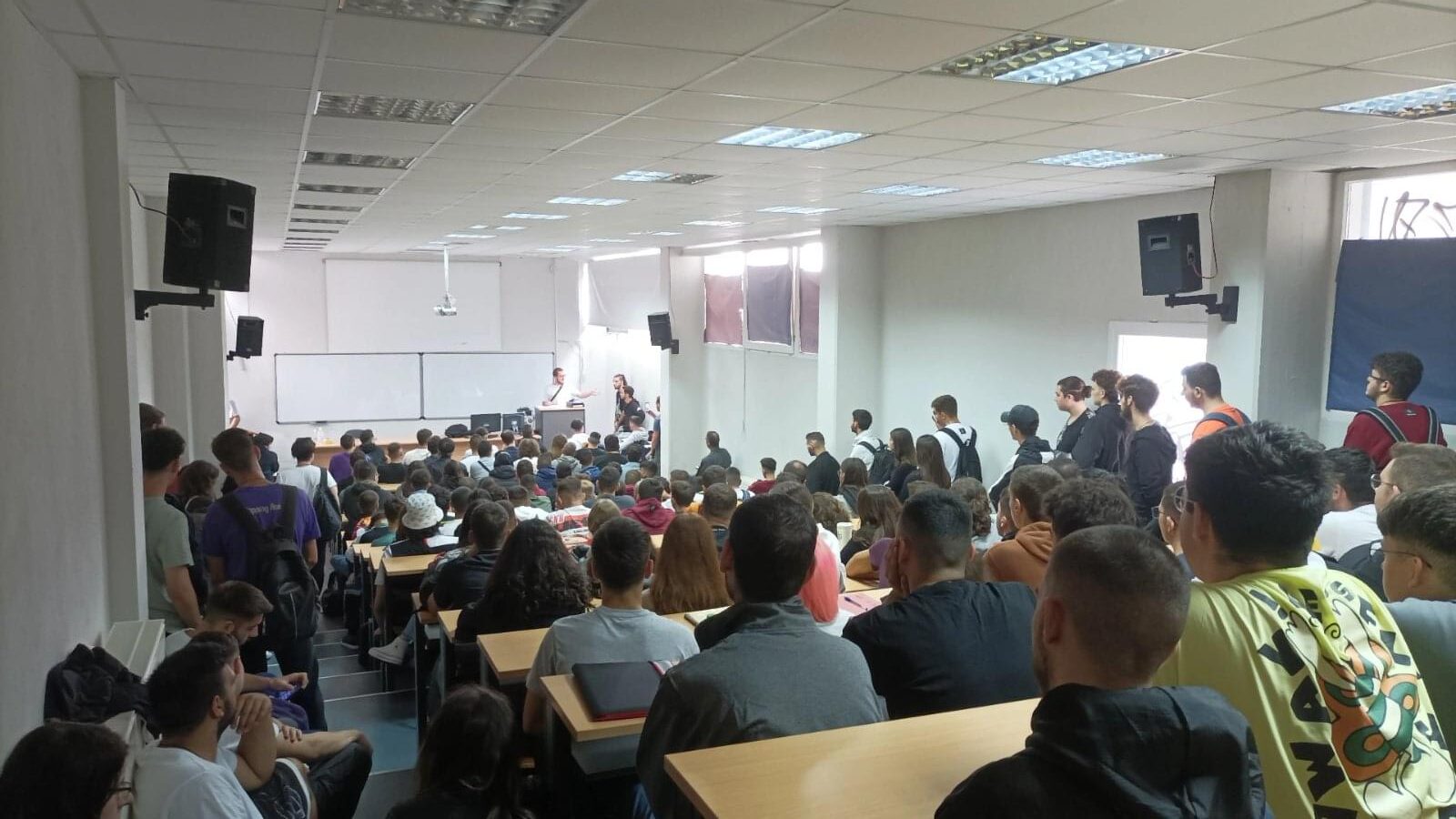 Ακολούθησε ξενάγηση στους χώρους του ιδρύματος και συζήτηση, για το τι είναι ο Φοιτητικός Σύλλογος, ποια είναι τα όργανά του, την σημασία που έχει η μαζική συμμετοχή των φοιτητών σε αυτόν, αλλά και τα προβλήματα που αντιμετωπίζουν οι φοιτητές σήμερα, όπως το ζήτημα της σίτισης που ακόμα δεν έχουν ανοίξει οι πλατφόρμες αιτήσεων για τους πρωτοετείς με συνέπεια να μην δικαιούται κανένας πρωτοετής δωρεάν σίτιση.