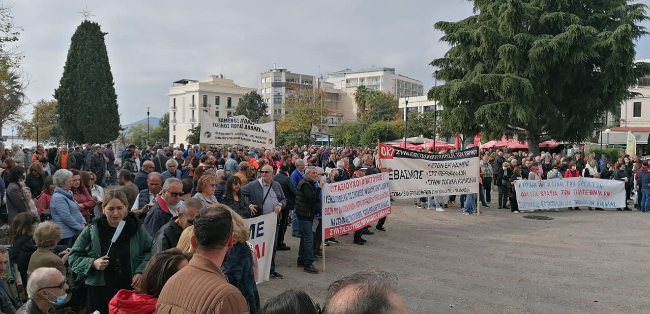 Με μεγάλη συμμετοχή πραγματοποιήθηκε η απεργιακή κινητοποίηση στην οποία κάλεσαν ΓΣΕΕ και ΑΔΕΔΥ για το πρωί της Τετάρτης στην κεντρική πλατεία της Καβάλας.