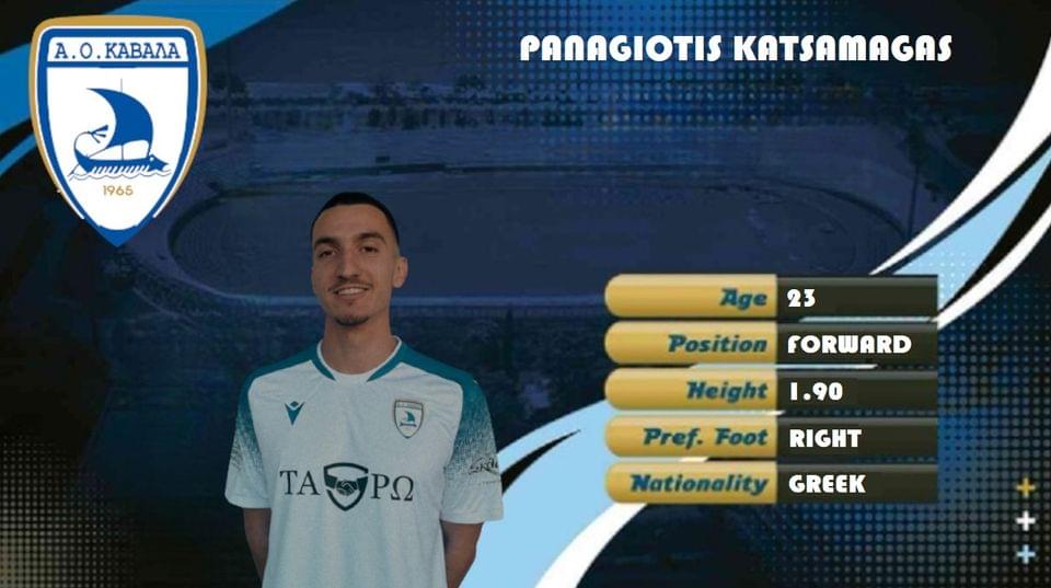 Η διοικούσα επιτροπή του Α.Ο.Καβάλα ανακοίνωσε την απόκτηση του ποδοσφαιριστή Παναγιώτη Κατσαμάγκα. Ο Κατσαμάγκας, είναι 23 ετών και αγωνίζεται ως επιθετικός. Τα τελευταία χρόνια έχει αγωνιστεί στο πρωτάθλημα της Γ’ Εθνικής με τις φανέλες των, Αετού Μακρυχωρίου, Δόξας Δράμας και Πιερικού ενώ για δυο χρόνια έχει αγωνιστεί σε μικρές κατηγορίες της Αγγλίας με τις, Harrogate Town, Ossett United και Blyth Spartans. Ο ΑΟ Καβάλα αναφέρει στην ανακοίνωση: “Ένα μεγάλο ευχαριστώ από καρδιάς στον πολυεθνικό όμιλο εταιρειών SOLARIUS και την κατασκευαστική εταιρεία TAΡΩ του κ.Τρικίδη Τάκη, τους 2 πιο σημαντικούς αρωγούς της φετινής μας προσπάθειας, για την πολύτιμη στήριξη τους. Είναι μεγάλη η χαρά μας που τους έχουμε συνοδοιπόρους και στηρίζουν όχι μόνο την ομάδα αλλά και τη νεολαία μας, με όραμα και όρεξη για την ανάπτυξη του αθλητισμού. Ο Α.Ο.Καβάλα είναι η ομάδα της πόλης μας, φέρει το όνομα της και χωρίς την στήριξη του φίλαθλου κόσμου, των τοπικών επιχειρήσεων/φορέων και των 2 αυτών εταιρειών δεν θα μπορούσαμε να πάμε μακριά. Μόνο όλοι μαζί ενωμένοι σαν μια γροθιά μπορούμε να ξανακάνουμε αυτή την ομάδα μεγάλη.