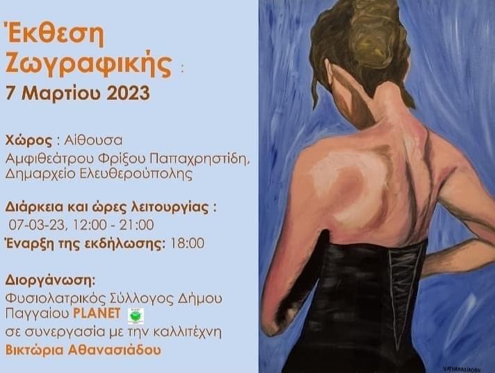 Ο Φυσιολατρικός Σύλλογος Παγγαίου PLANET και η καλλιτέχνης Βικτωρια Αθανασιαδου σας προσκαλούν στην έκθεση ζωγραφικής με αφορμή την παγκόσμια ημέρα γυναίκας ώστε όλοι μαζί, μέσα από τη μαγεία της τέχνης, να ταξιδέψουμε σε εικόνες μοναδικές, γεμάτες χρώμα και αισιοδοξία!