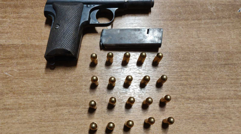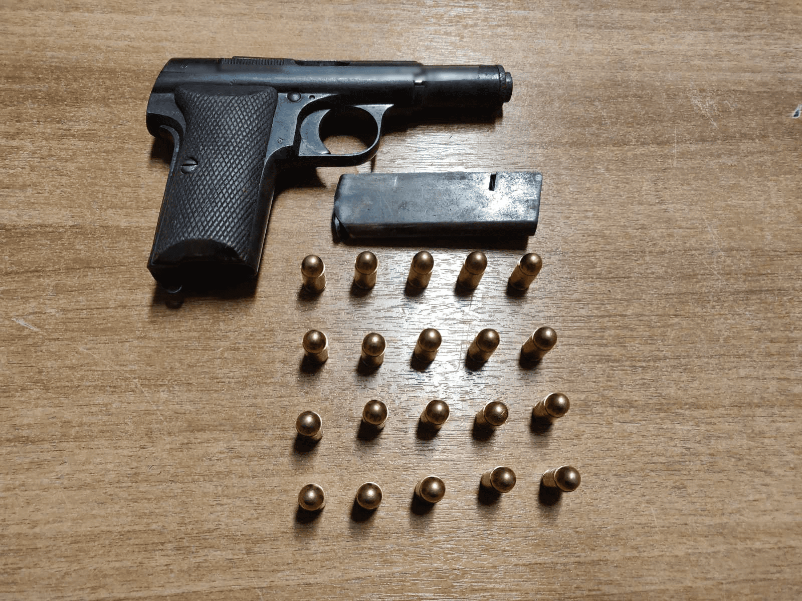 Αναλυτικότερα, οι αστυνομικοί συνέλαβαν τον δράστη διότι τον εντόπισαν να κατέχει ένα (1) πιστόλι, μία (1) γεμιστήρα και είκοσι (20) φυσίγγια, τα οποία και κατασχέθηκαν.