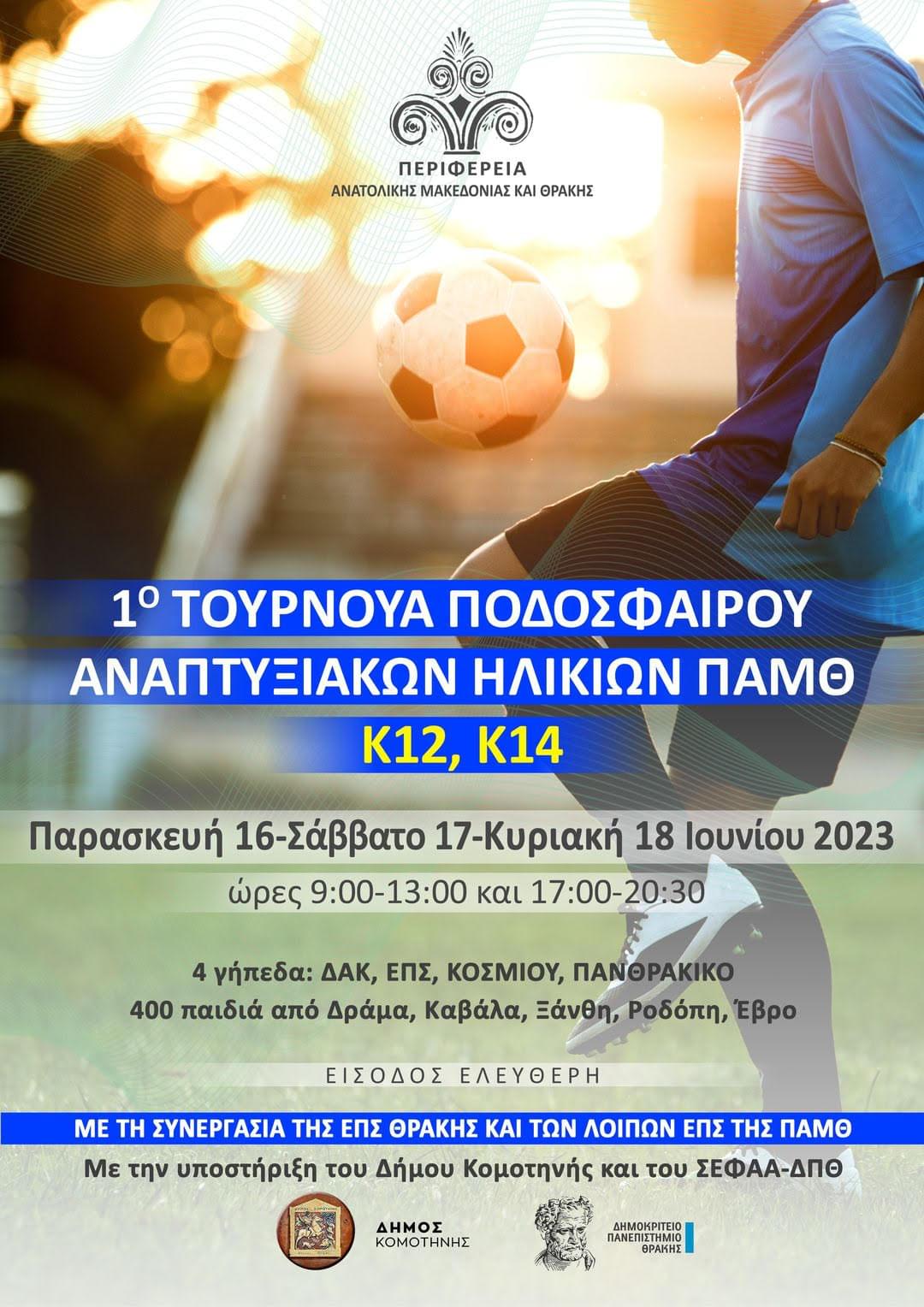 Το συγκεκριμένο τουρνουά είναι μία πρωτοβουλία της Περιφέρειας Ανατολικής Μακεδονίας και Θράκης και θα λάβει χώρα στην Κομοτηνή το τριήμερο 16-18 Ιουνίου 2023, με τη συμμετοχή τμημάτων Κ-12 και Κ-14 από όλες τις πόλεις της Περιφέρειας.