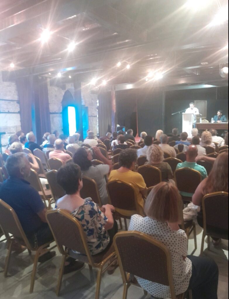Η αίθουσα γέμισε από υποψήφιους και φίλους της Λαϊκής Συσπείρωσης, που δίνουν με αισιοδοξία και πείσμα τη μάχη για την αλλαγή του συσχετισμού στο Δήμο Θάσου και στην Περιφέρεια της Ανατολικής Μακεδονίας και Θράκης.