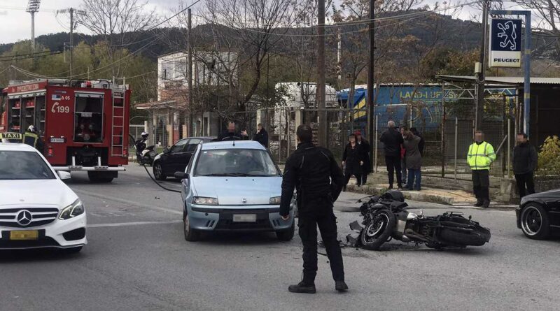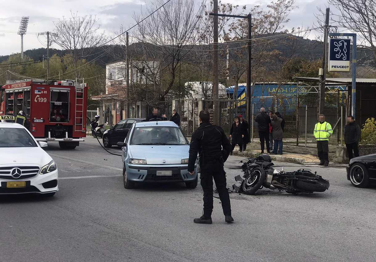 Σοβαρό τροχαίο στα νεκροταφεία. Σύγρουση αυτοκινητου με μοτοσυκλέτα