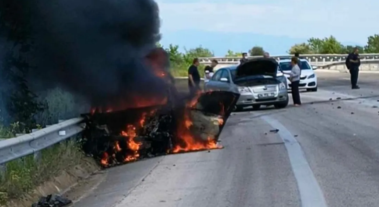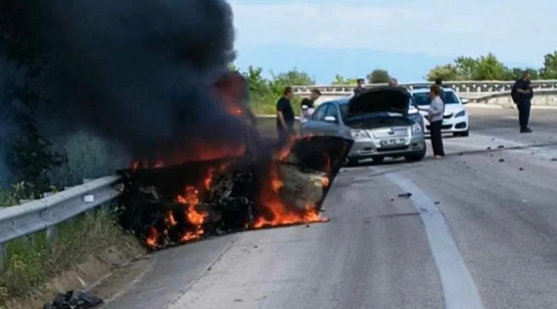 Aυτοκίνητο στην Εγνατία τυλίχθηκε στις φλόγες μετά από αύγκρουση