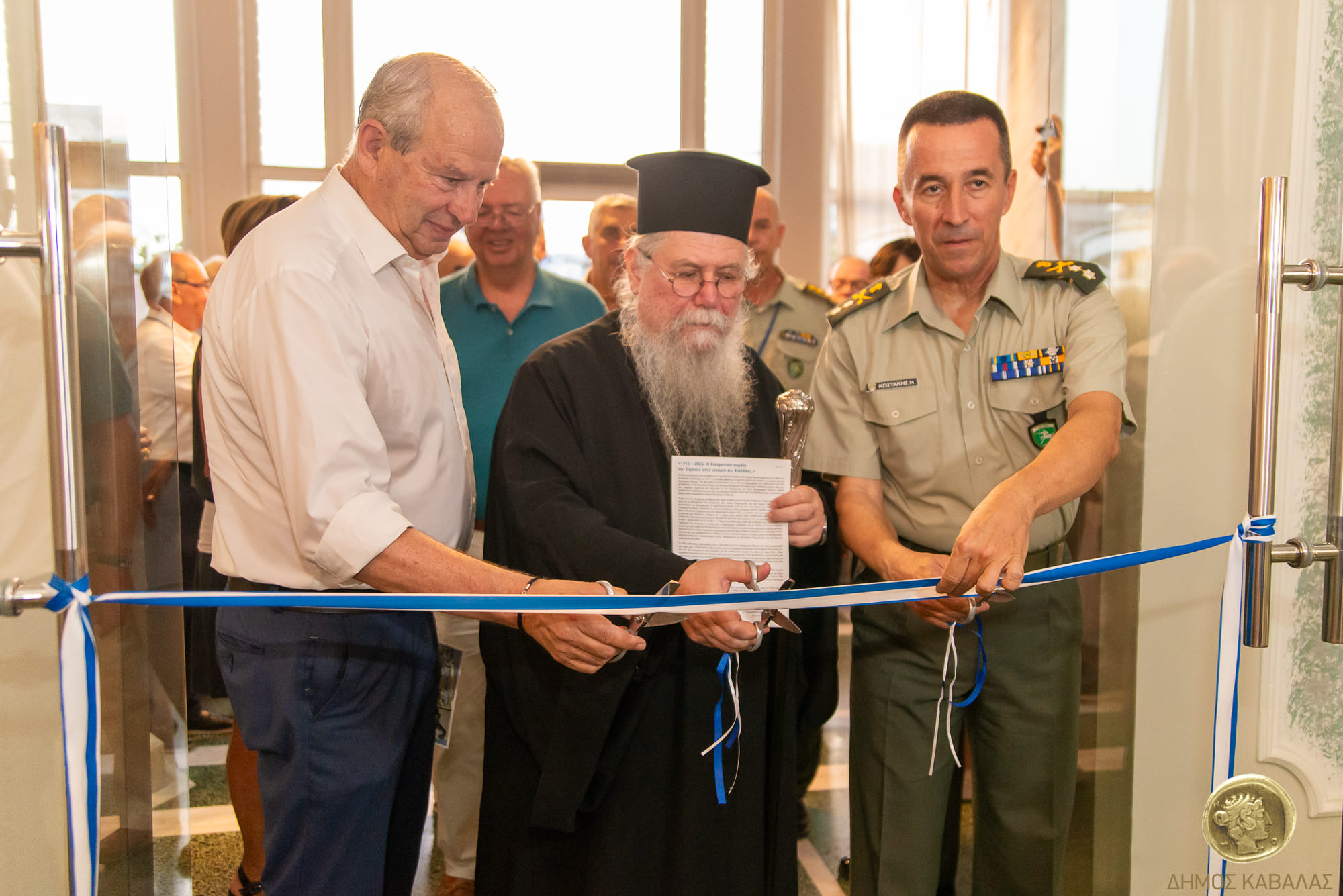 Σε μία γεμάτη από κόσμο αίθουσα πραγματοποιήθηκαν το βράδυ της Πέμπτης 20 Ιουνίου, στη Λέσχη Αξιωματικών Φρουράς Καβάλας, τα εγκαίνια της έκθεσης τεκμηρίων, κειμηλίων και φωτογραφιών που ανακαλούν στη μνήμη τις κορυφαίες στιγμές από την υπερεκατονταετή παρουσία του ελληνικού στρατού στην πόλη μας. Την κορδέλα των εγκαινίων, παρουσία εκπροσώπων πολιτικών αρχών και πολιτιστικών συλλόγων της Καβάλας, έκοψαν ο Σεβασμιώτατος Μητροπολίτης Φιλίππων, Νεαπόλεως και Θάσου κ. Στέφανος, ο Δήμαρχος Καβάλας, Θόδωρος Μουριάδης και ο Διοικητής της 20ης Τεθωρακισμένης Μεραρχίας, Υποστράτηγος, Ηλίας Κωστάκης.