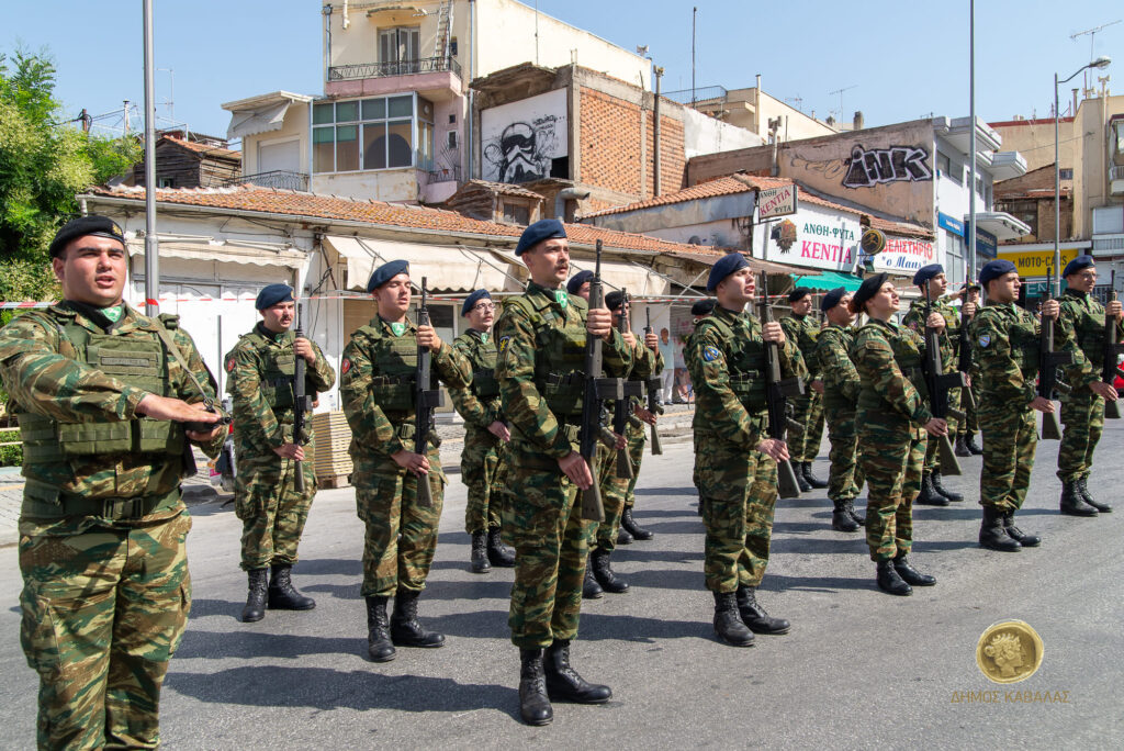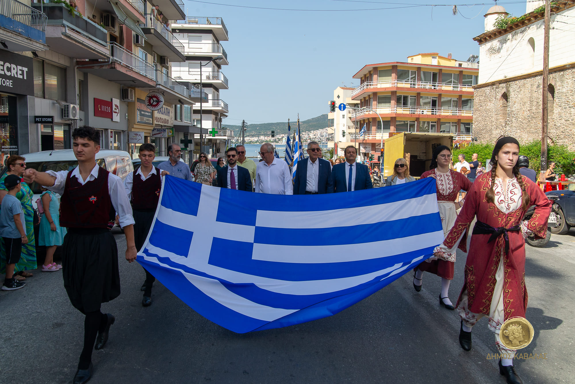 Προηγήθηκε πομπή στην οδό Κουντουριώτου, στην οποία συμμετείχαν οι πολιτικές και στρατιωτικές αρχές του τόπου, η Φιλαρμονική Ορχήστρα του Δήμου Καβάλας, τα μέλη του Λυκείου Ελληνίδων Καβάλας και μαθητές Δημοτικών Σχολείων της Καβάλας.