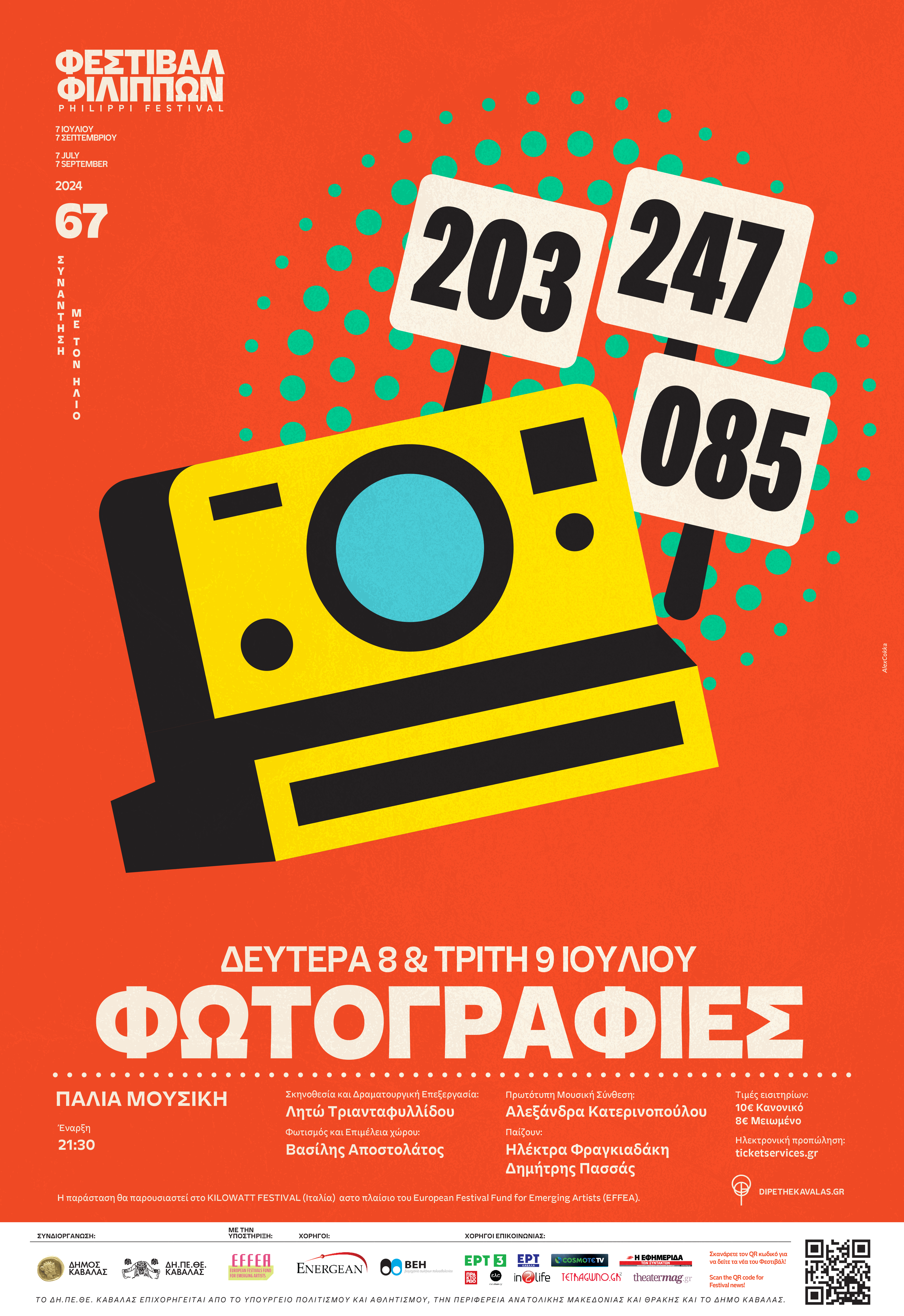 *Η παράσταση συγχρηματοδοτείται από το European Festival Fund for Emerging Artists (EFFEA) και στο πλαίσιο αυτό, αμέσως μετά την πρεμιέρα της στο Φεστιβάλ Φιλίππων θα ταξιδέψει για να παρουσιαστεί στο KILOWATT FESTIVAL (Ιταλία).