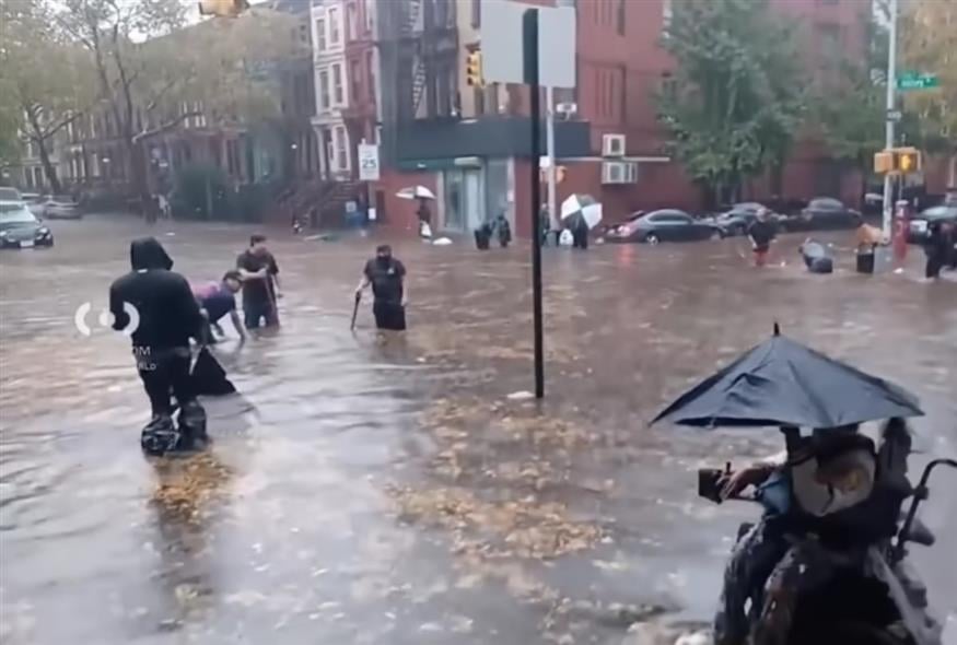 Πρωτοφανείς βροχοπτώσεις έπληξαν χθες τη Νέα Υόρκη και προκάλεσαν πλημμύρες και σοβαρές ζημιές σε γειτονίες της παραλύοντας τη μητρόπολη και κοστίζοντας τη ζωή σε δυο ανθρώπους.
