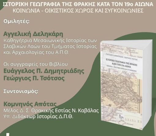 «Ιστορική Γεωγραφία της Θράκης κατά τον 19ο αιώνα: Κοινωνία – Οικιστικός Χώρος και Συγκοινωνίες». Παρουσίαση βιβλίου