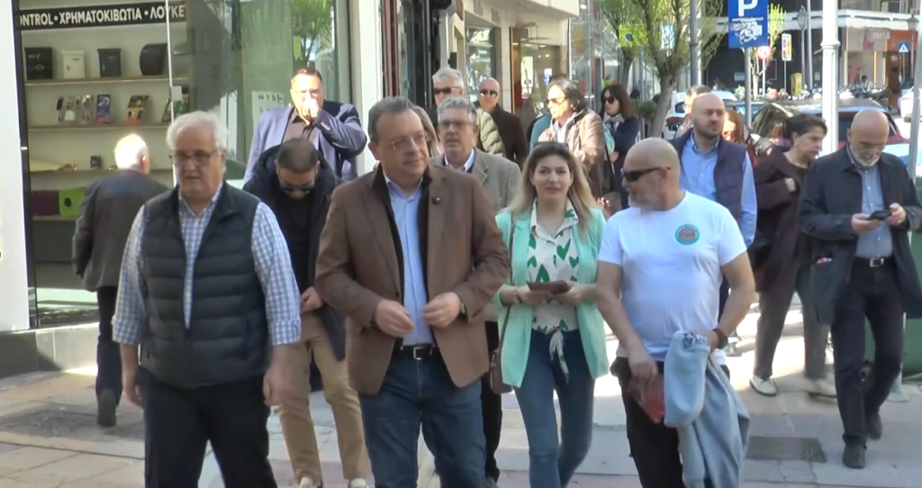 Η επίσκεψη του ξεκίνησε στην αγορά της πόλης από πλατεία Καπνεργάτη και συνεχίστηκε με συνάντηση με τον πρόεδρο του Εμπορικού Συλλόγου (οδός Ομονοίας, στοά Νότη)
