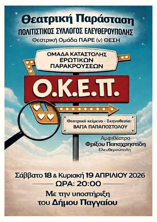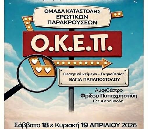 ΘΕΑΤΡΙΚΗ ΠΑΡΑΣΤΑΣΗ-«Ο.Κ.Ε.Π. – Ομάδα Καταστολής Ερωτικών Παρακρούσεων»-ΠΟΛΙΤΙΣΤΙΚΟΣ ΣΥΛΛΟΓΟΣ ΕΛΕΥΘΕΡΟΥΠΟΛΗΣ